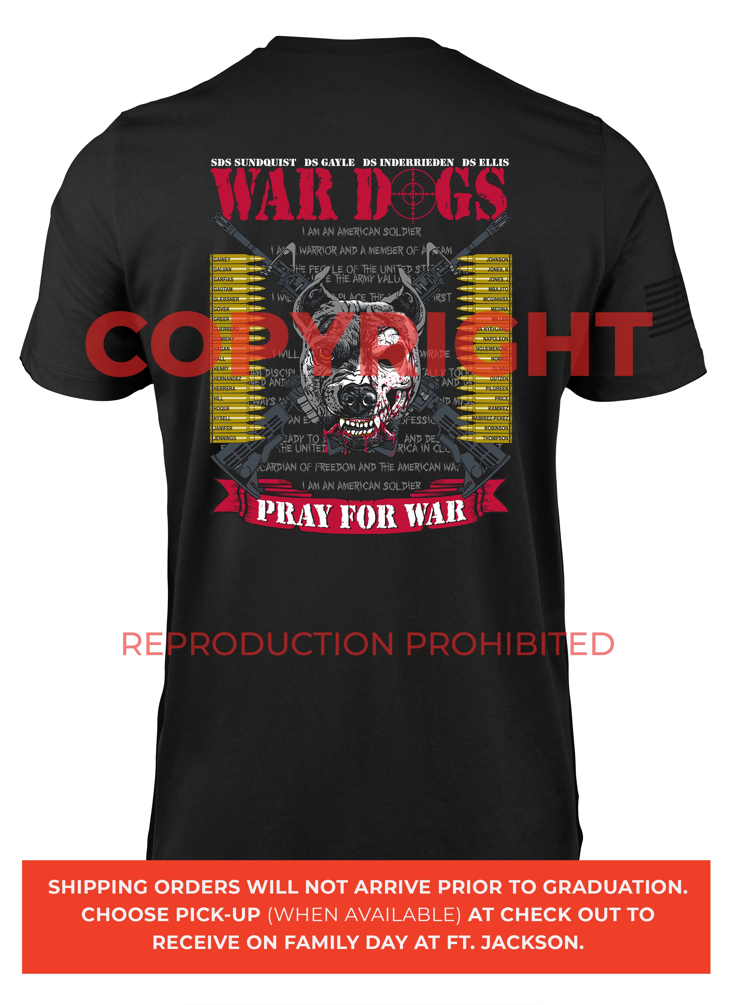 Platoon shirts features artwork designed by your Soldiers! All Platoon orders are printed on 100% black cotton, unisex sizing. Short sleeve shirts feature the American Flag on the right sleeve.