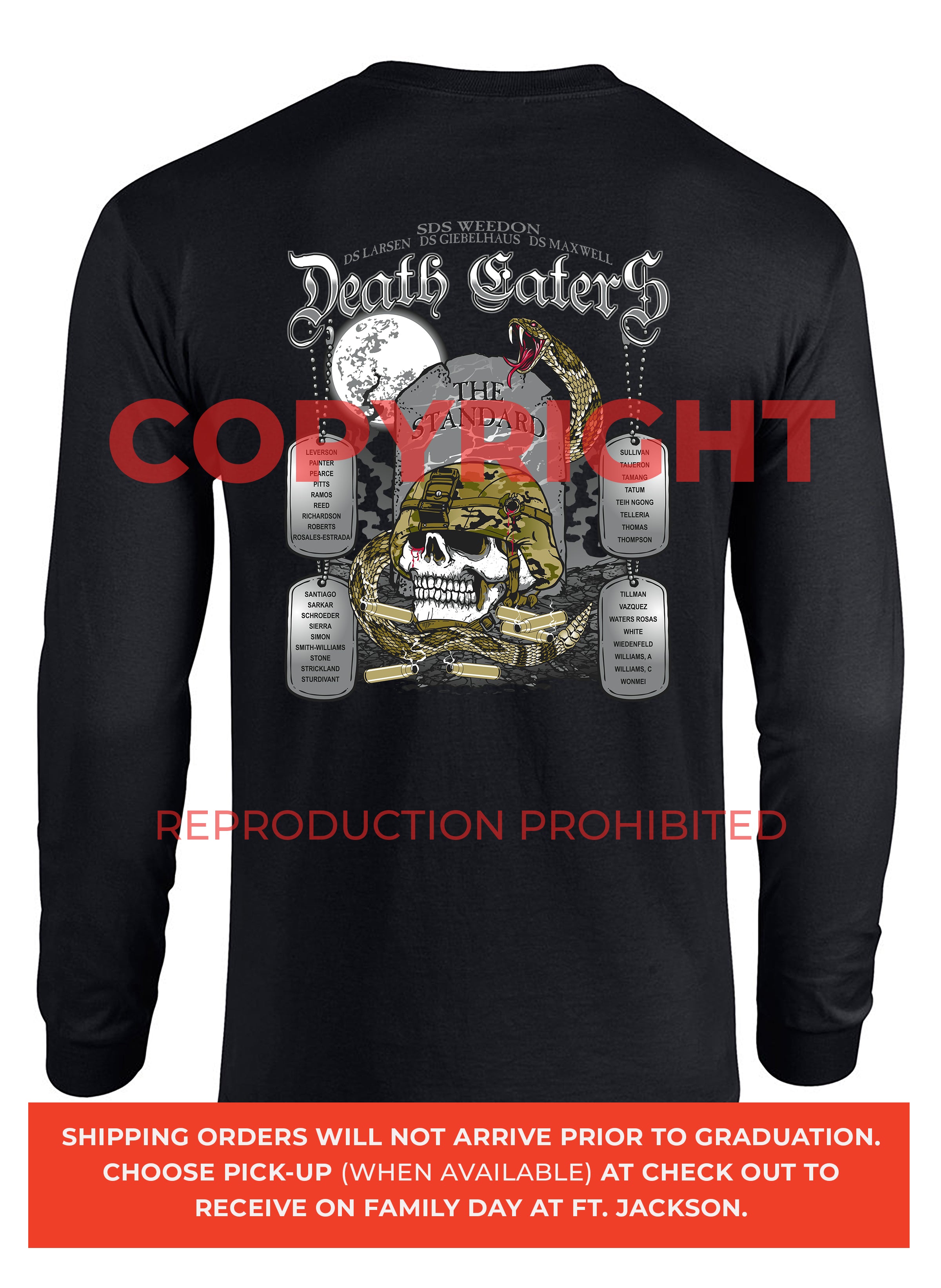 *Begin shipping the week of the graduation because shirts are custom made each week for the Soldiers, then we are able to ship the remainder to you at home!