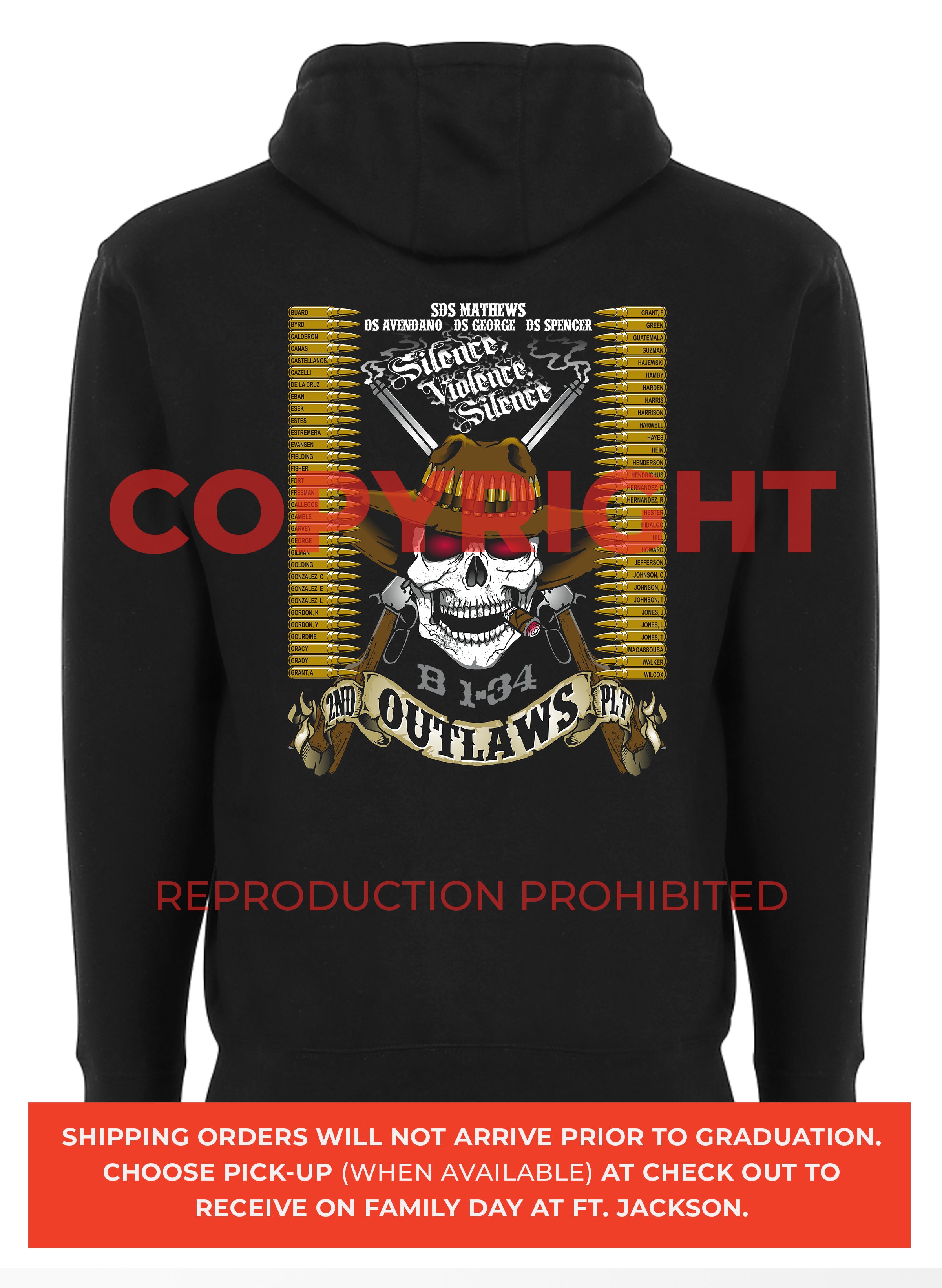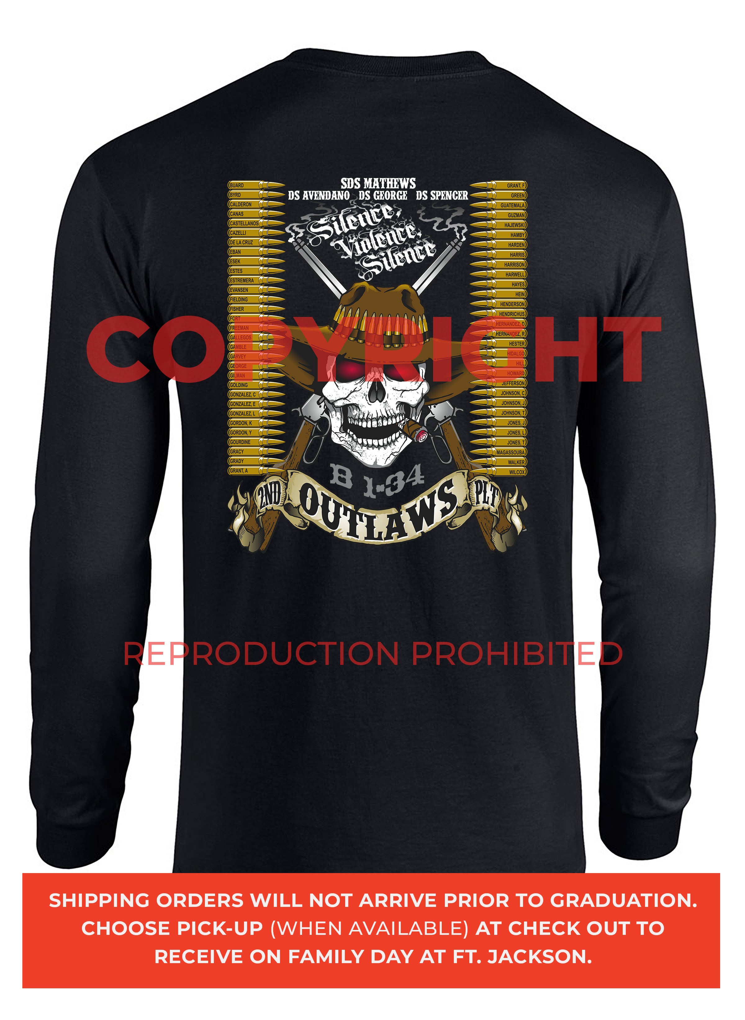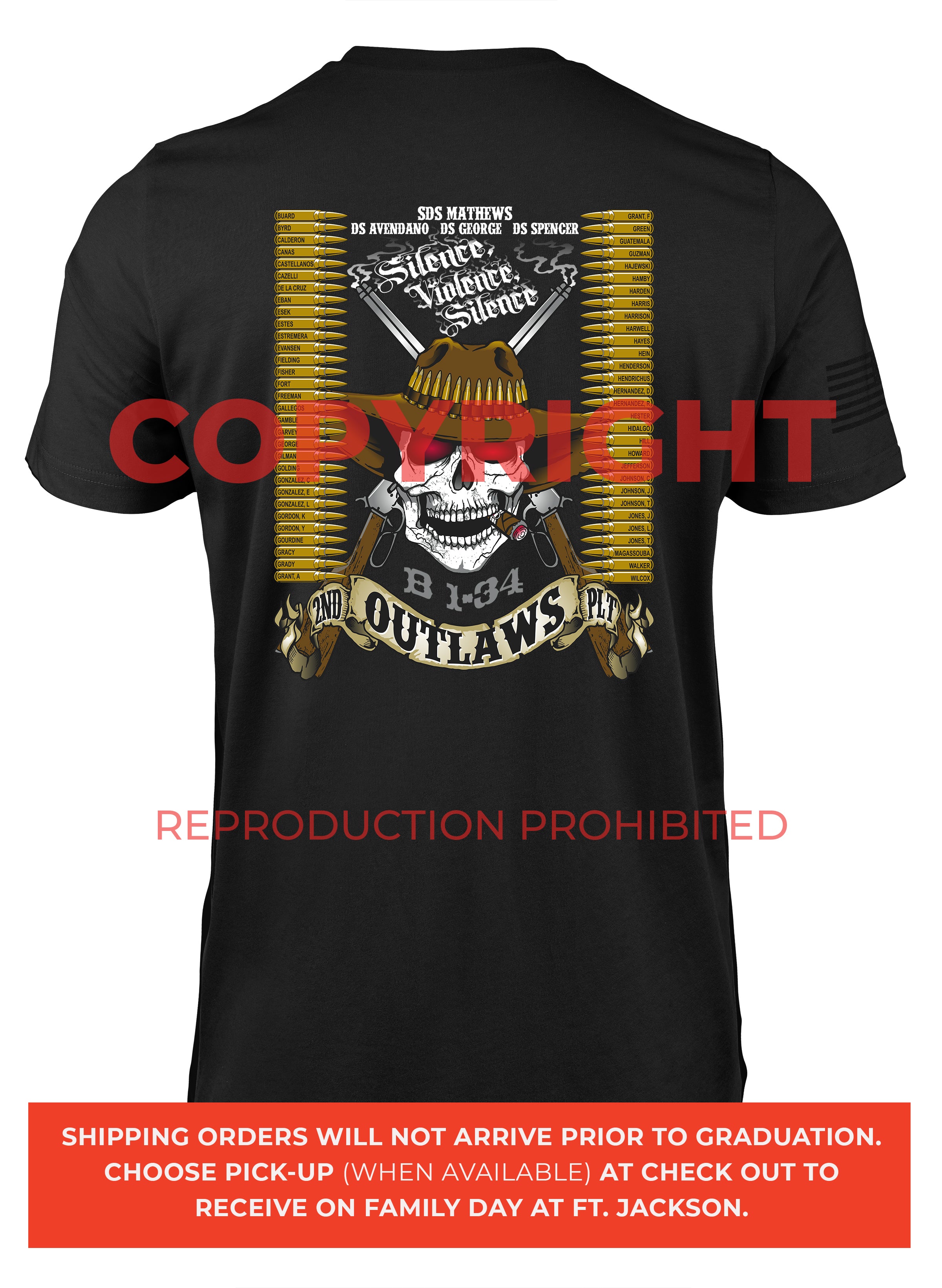 *Begin shipping the week of the graduation because shirts are custom made each week for the Soldiers, then we are able to ship the remainder to you at home!