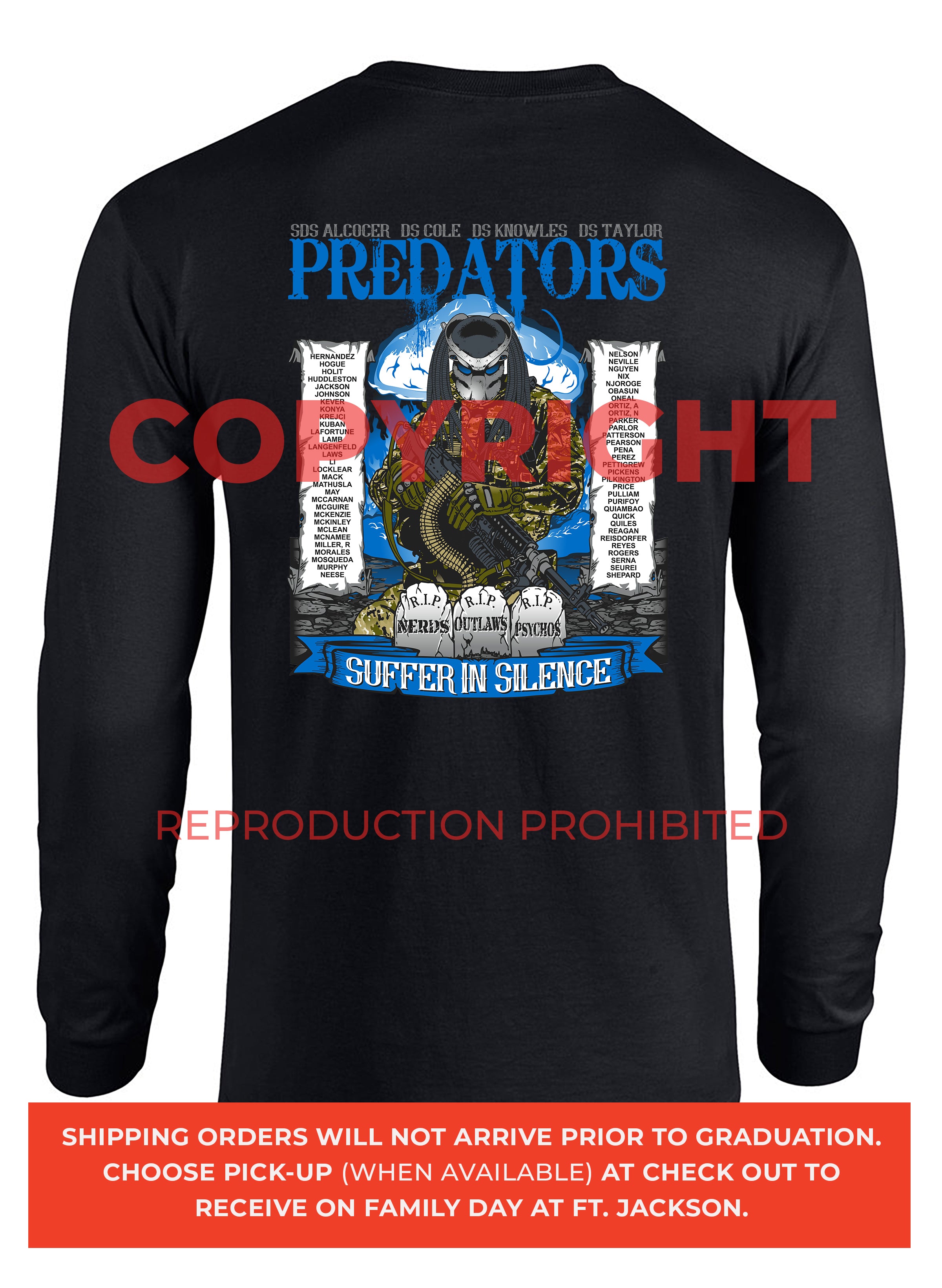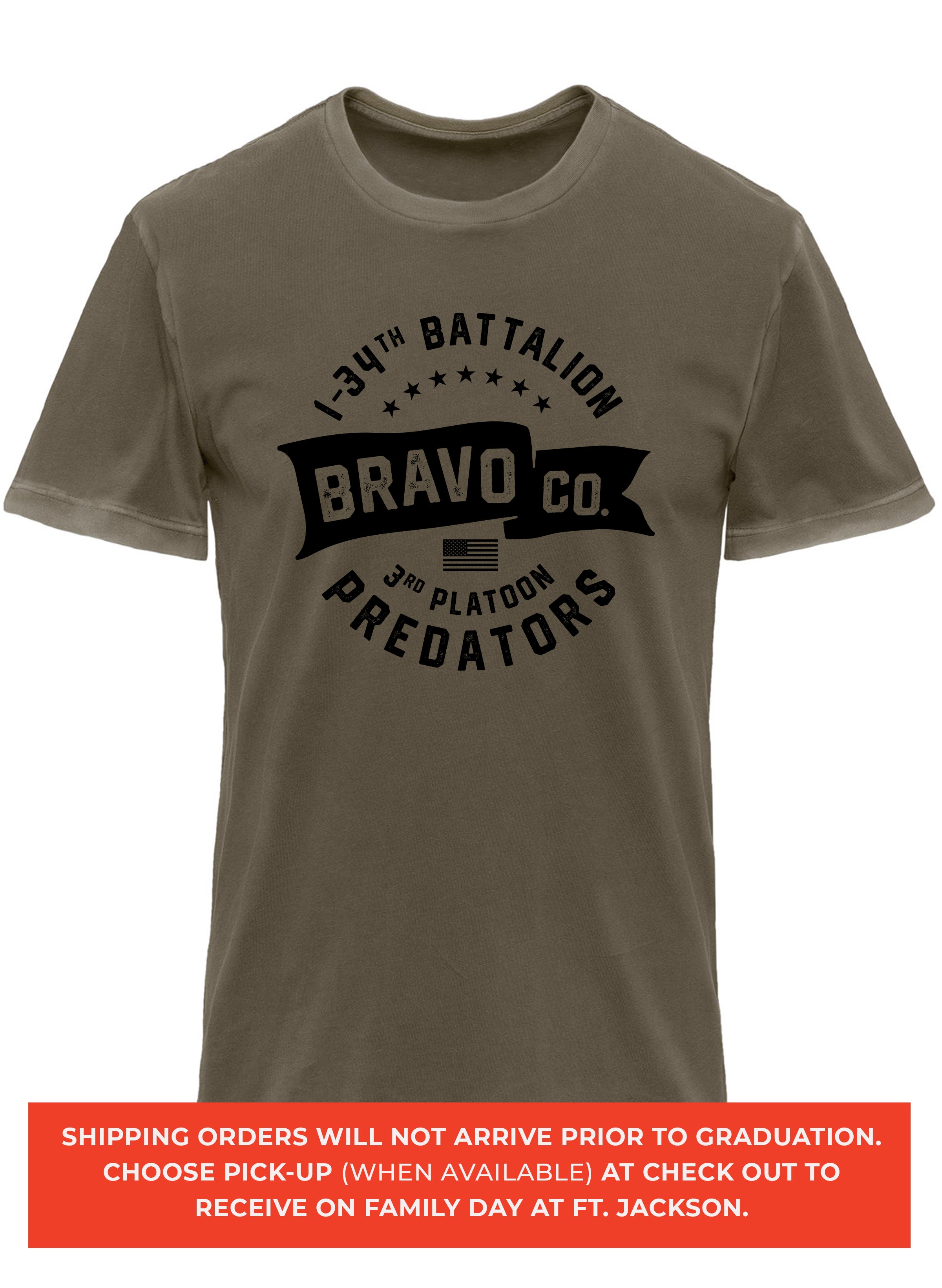*Begin shipping the week of the graduation because shirts are custom made each week for the Soldiers, then we are able to ship the remainder to you at home!