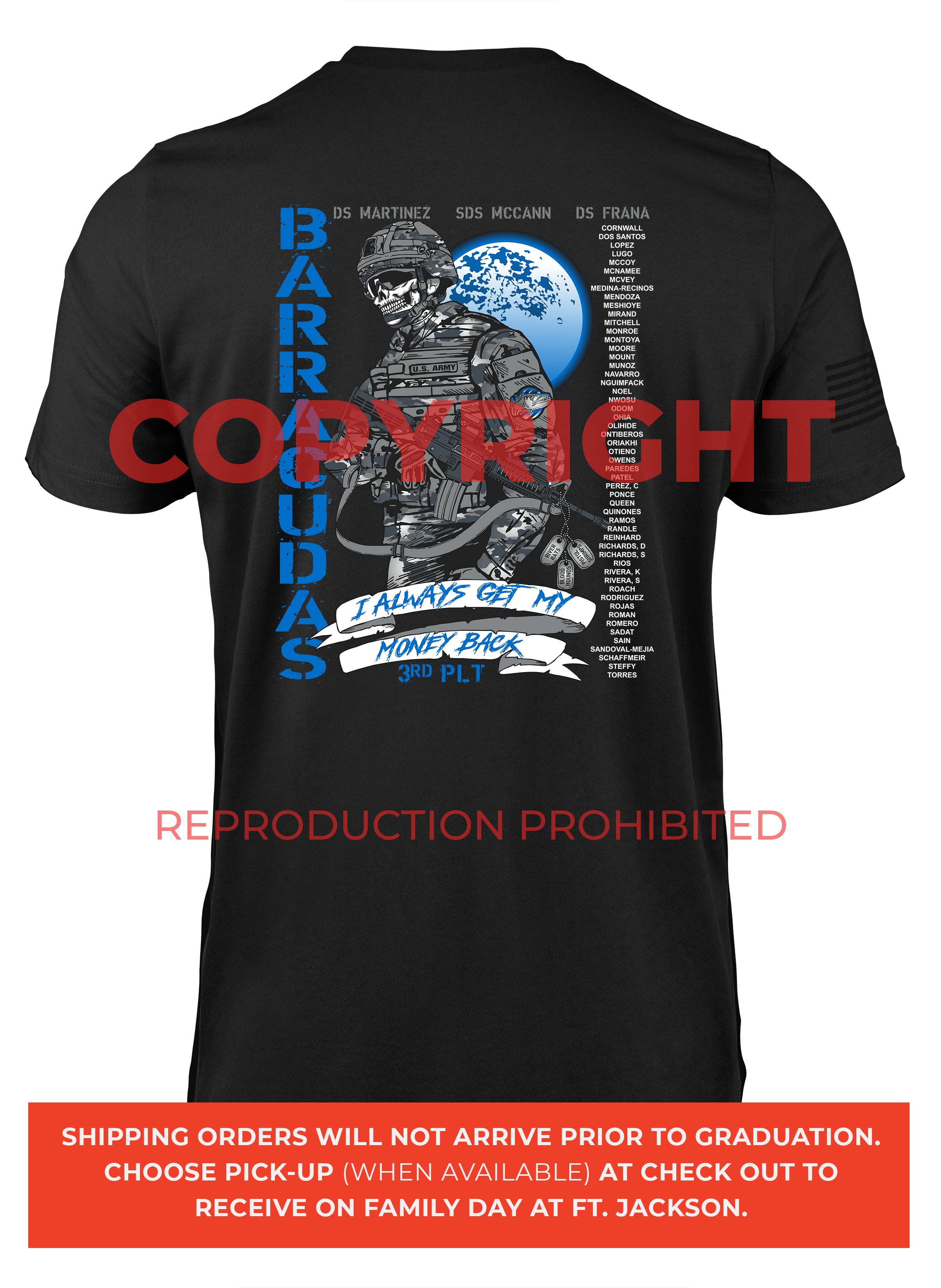 *DISCLAIMER:  Please make sure you are picking the correct battalion/graduation date/company/platoon nickname.  Platoon orders are NON-REFUNDABLE OR EXCHANGEABLE since they are custom made each week.  Ordering incorrectly will result in additional fees (50% of your original payment and if required, shipping fees) if you wish to have your order corrected.