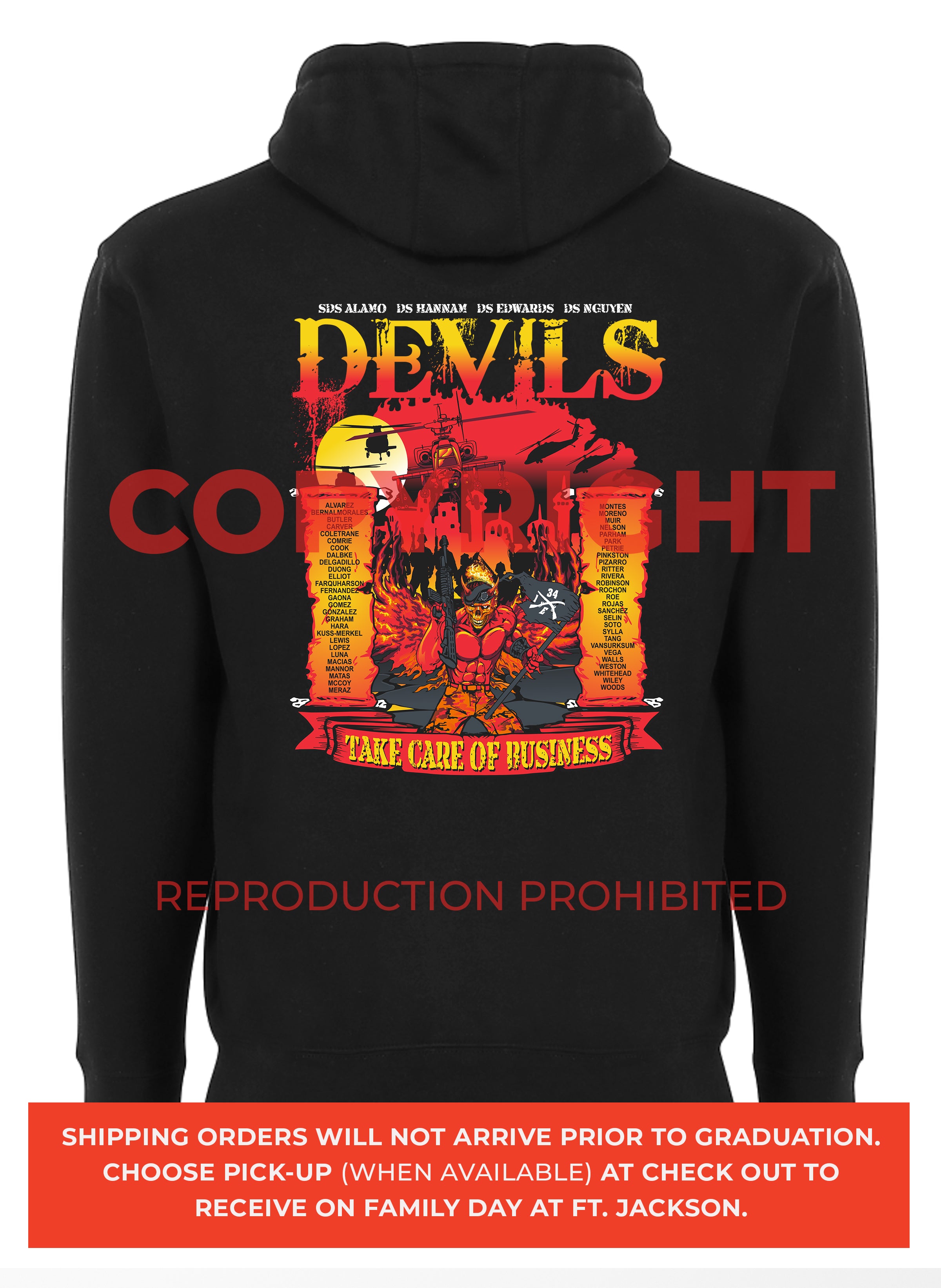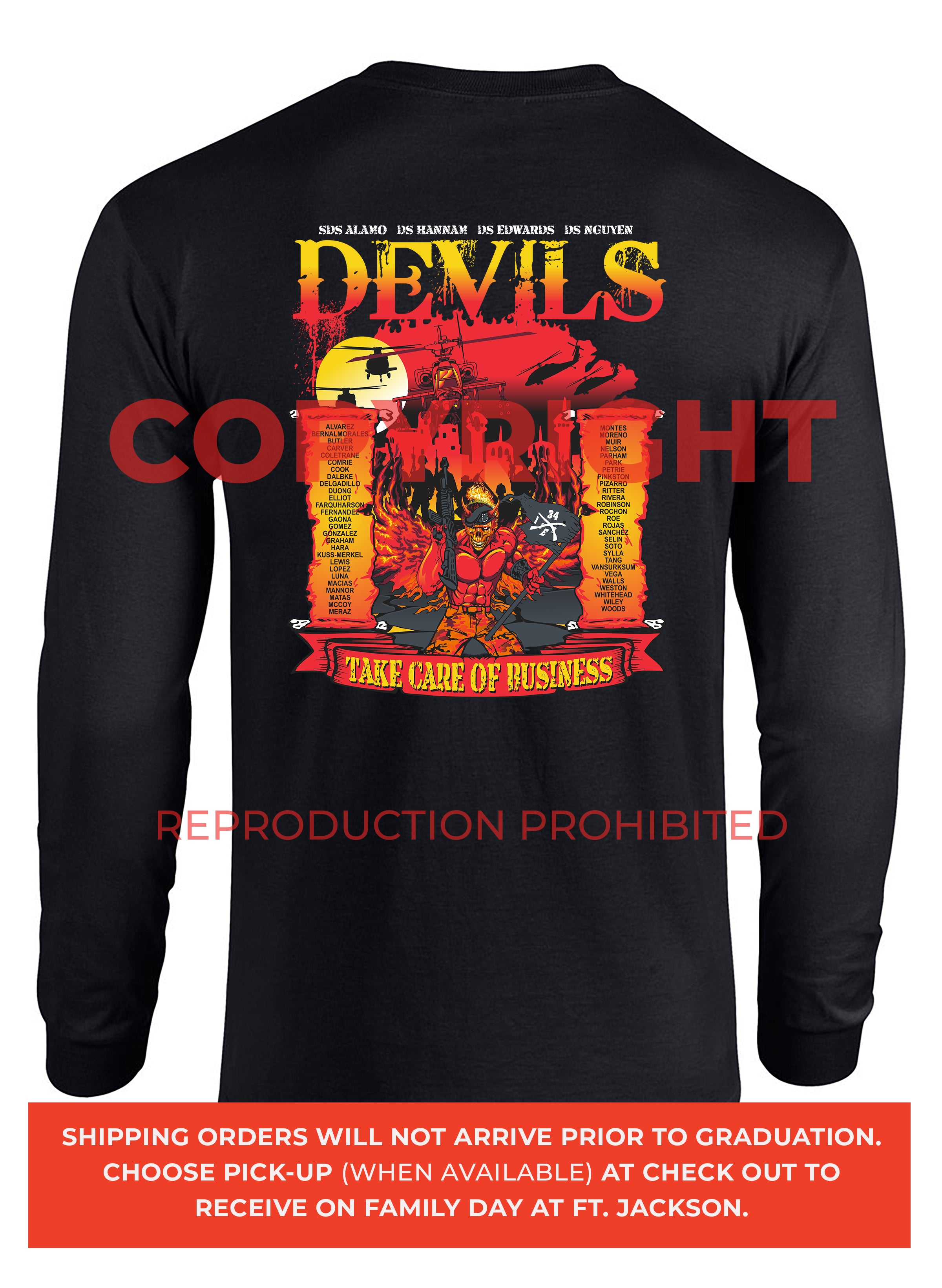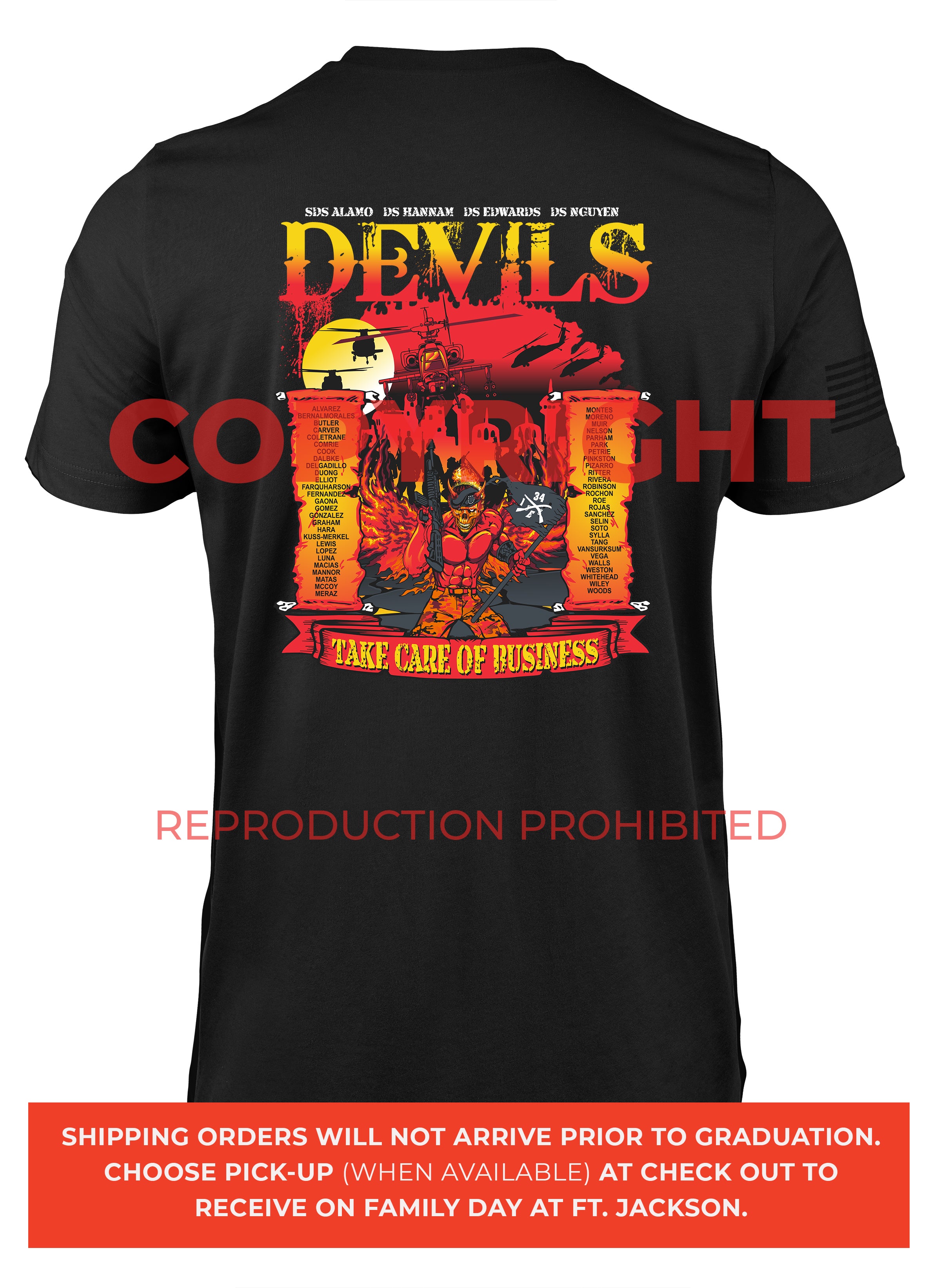*Begin shipping the week of the graduation because shirts are custom made each week for the Soldiers, then we are able to ship the remainder to you at home!