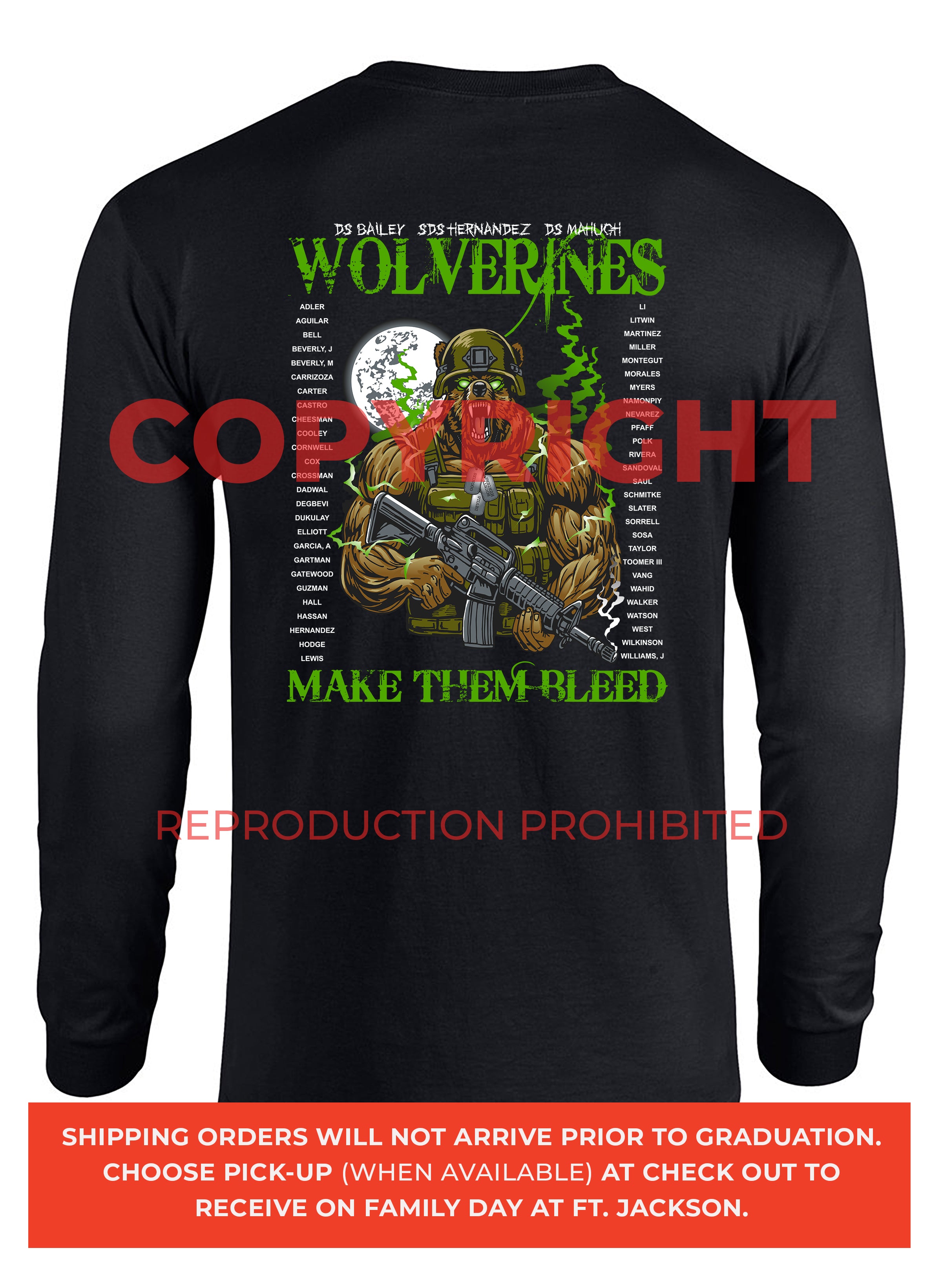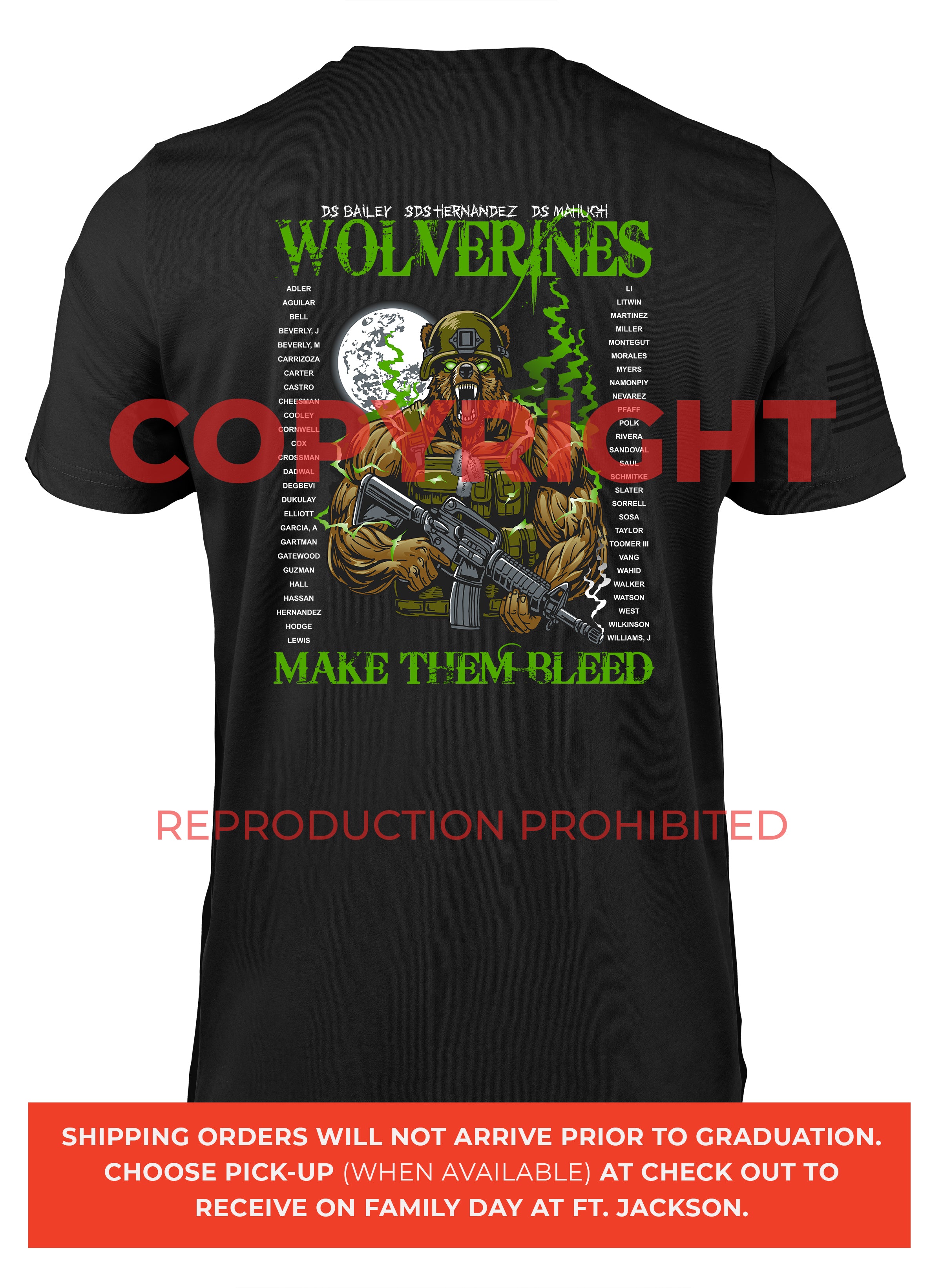 *Begin shipping the week of the graduation because shirts are custom made each week for the Soldiers, then we are able to ship the remainder to you at home!