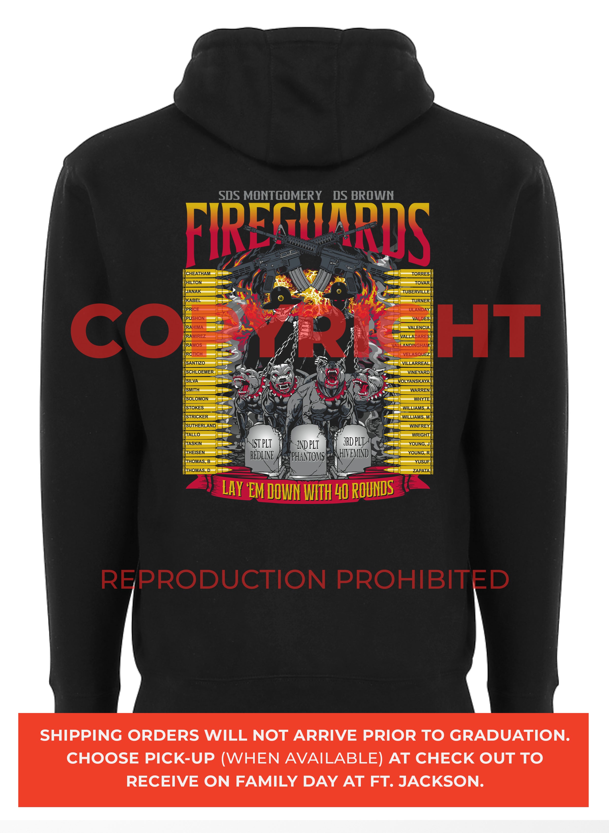 *DISCLAIMER: Please make sure you are picking the correct battalion/graduation date/company/platoon nickname. Platoon orders are NON-REFUNDABLE OR EXCHANGEABLE since they are custom made each week. Ordering incorrectly will result in additional fees (50% of your original payment and if required, shipping fees) if you wish to have your order corrected.