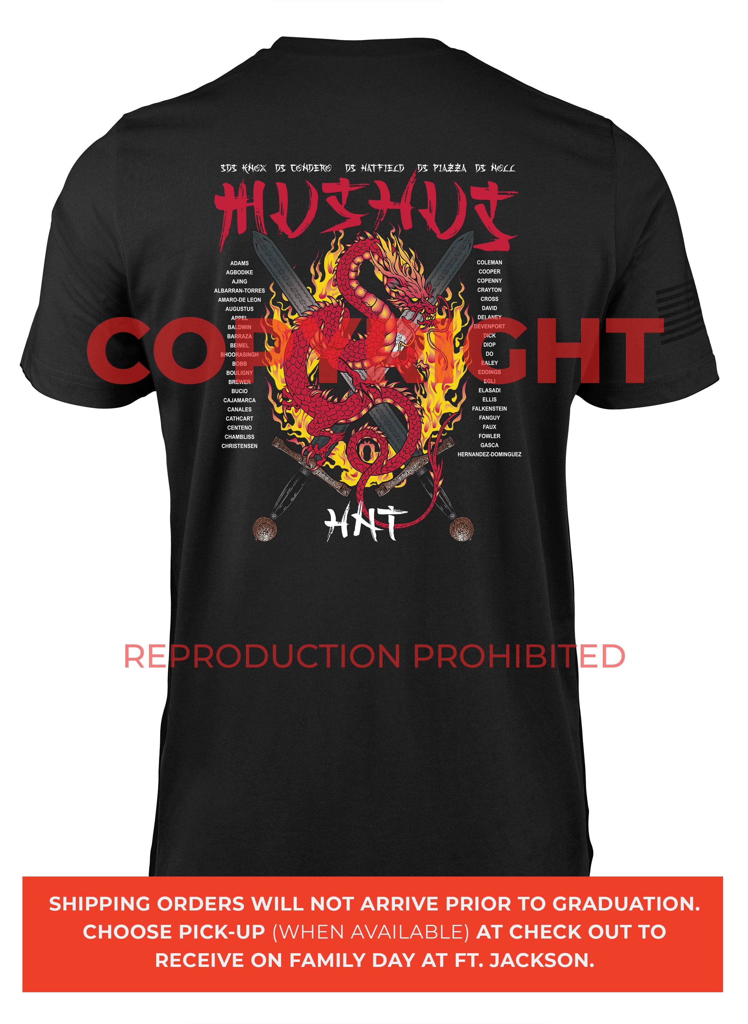 *Begin shipping the week of the graduation because shirts are custom made each week for the Soldiers, then we are able to ship the remainder to you at home!