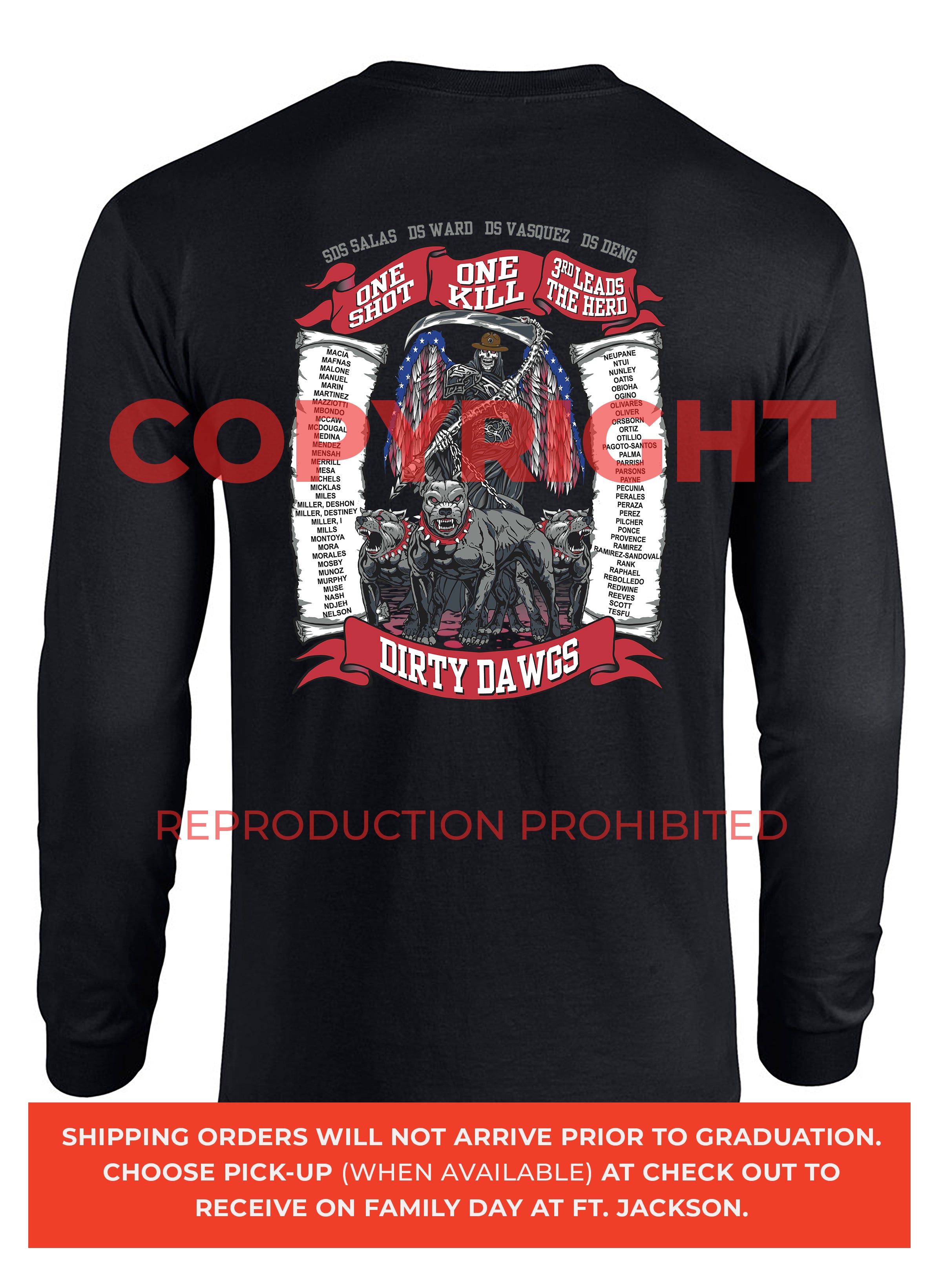 *Begin shipping the week of the graduation because shirts are custom made each week for the Soldiers, then we are able to ship the remainder to you at home!