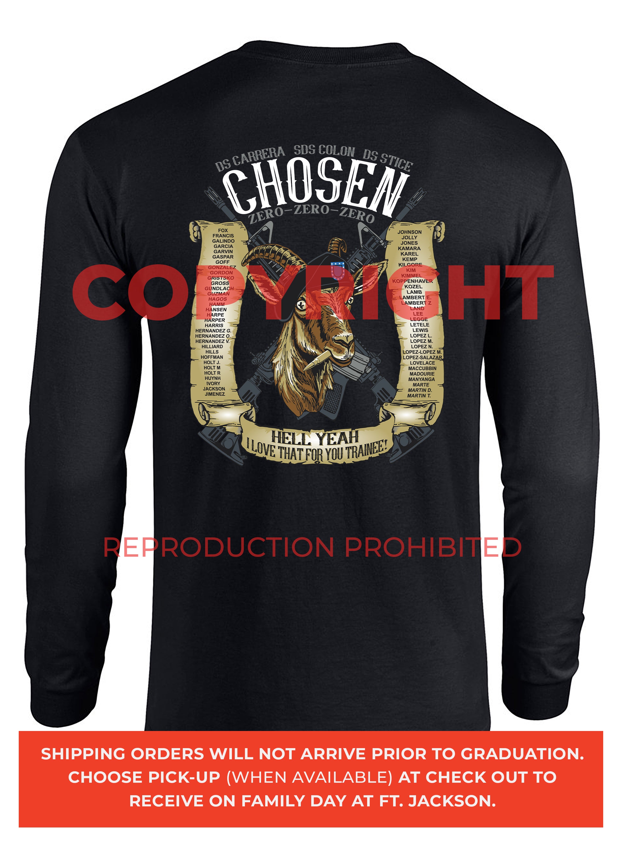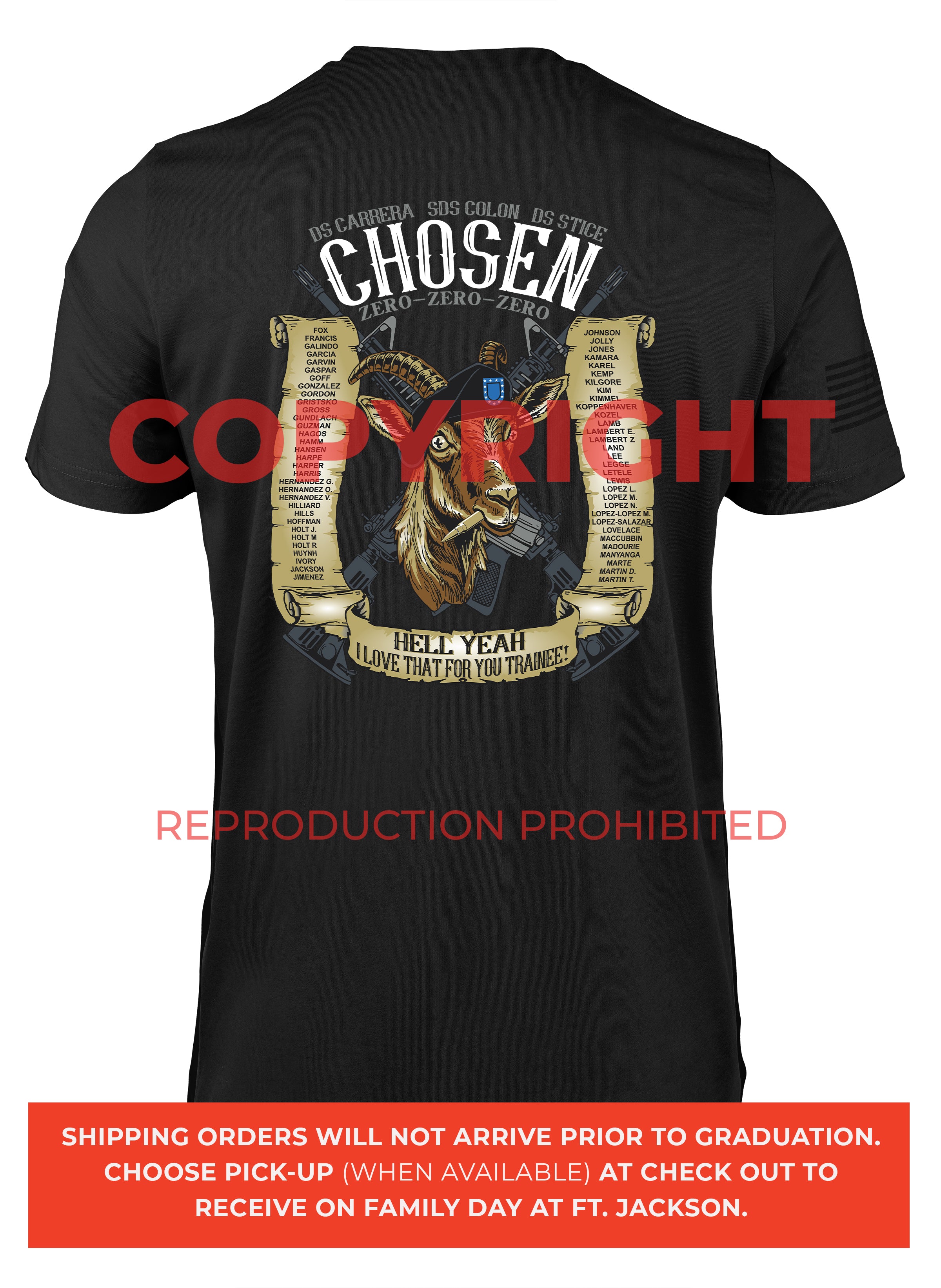 *Begin shipping the week of the graduation because shirts are custom made each week for the Soldiers, then we are able to ship the remainder to you at home!