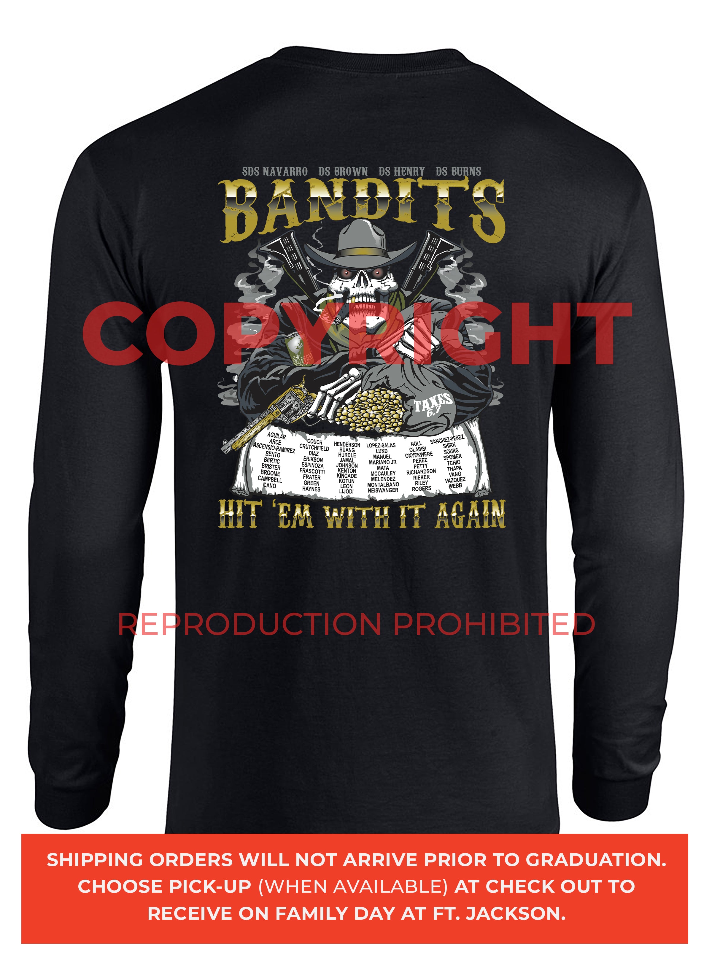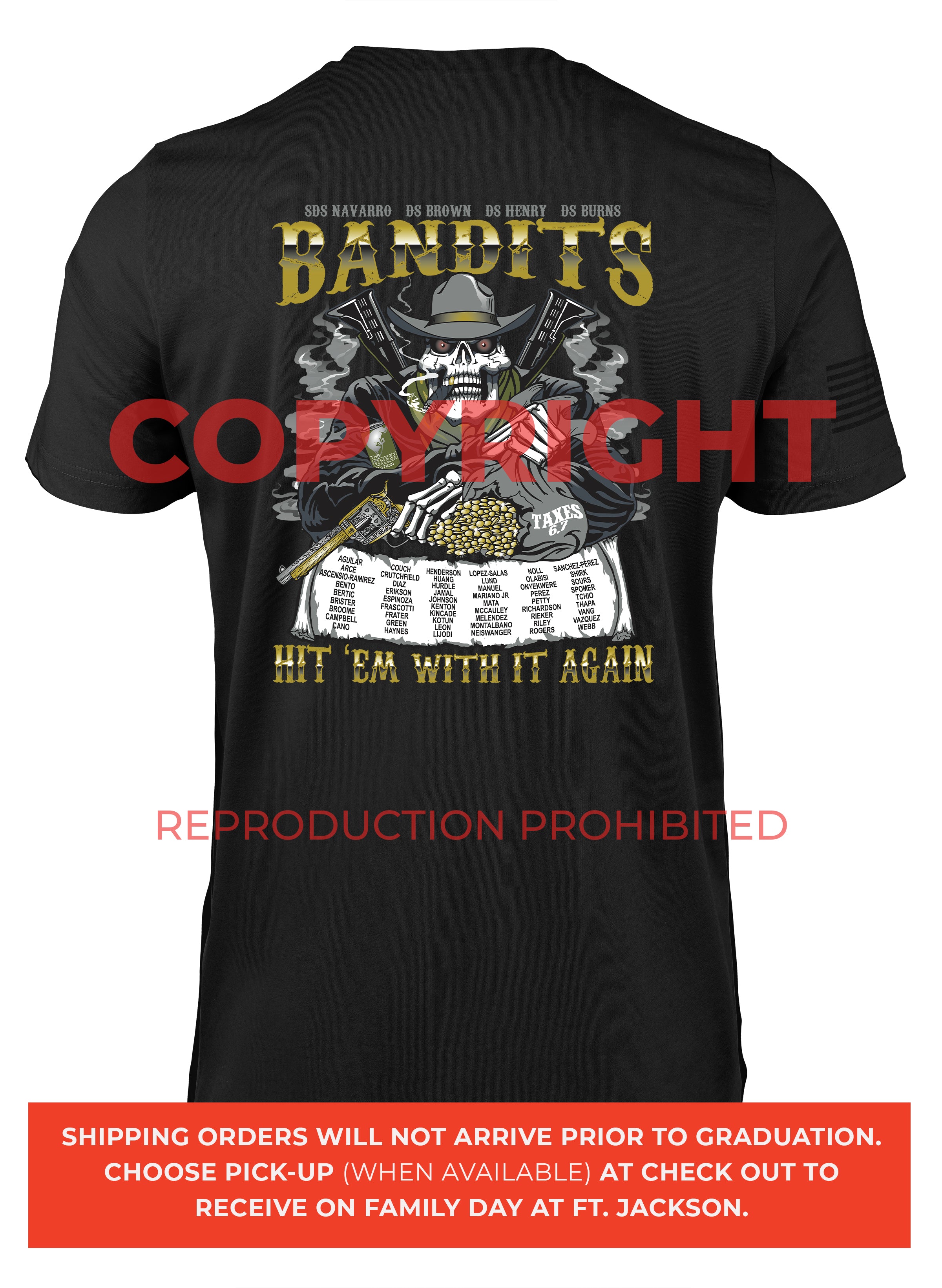 *Begin shipping the week of the graduation because shirts are custom made each week for the Soldiers, then we are able to ship the remainder to you at home!