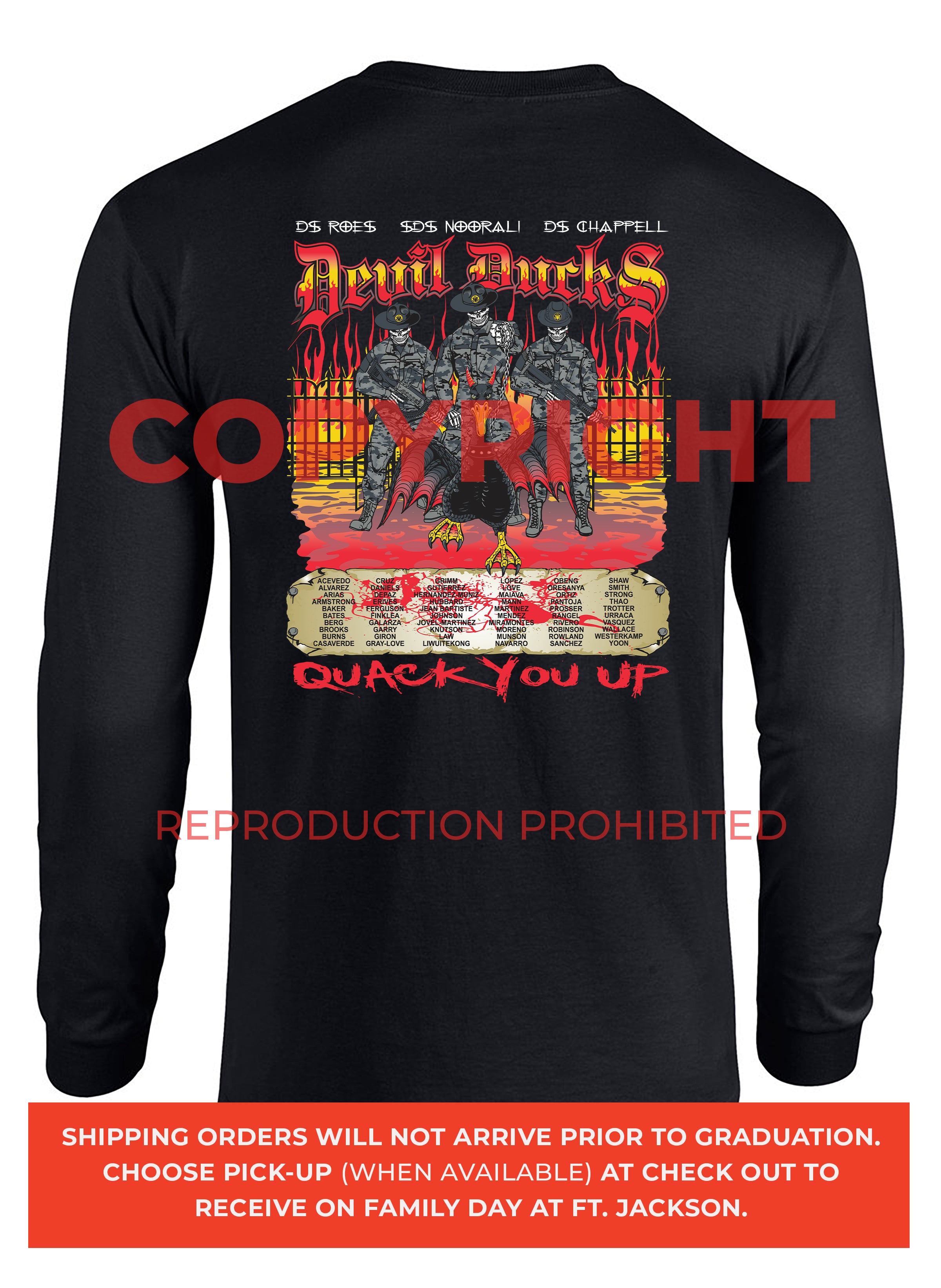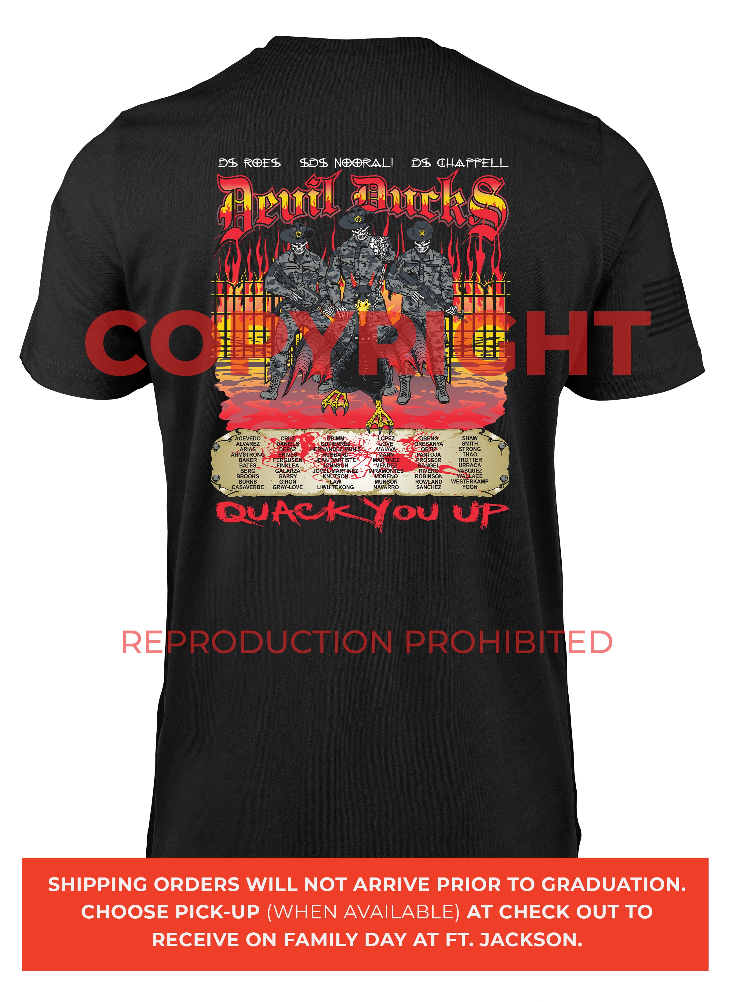 *Begin shipping the week of the graduation because shirts are custom made each week for the Soldiers, then we are able to ship the remainder to you at home!