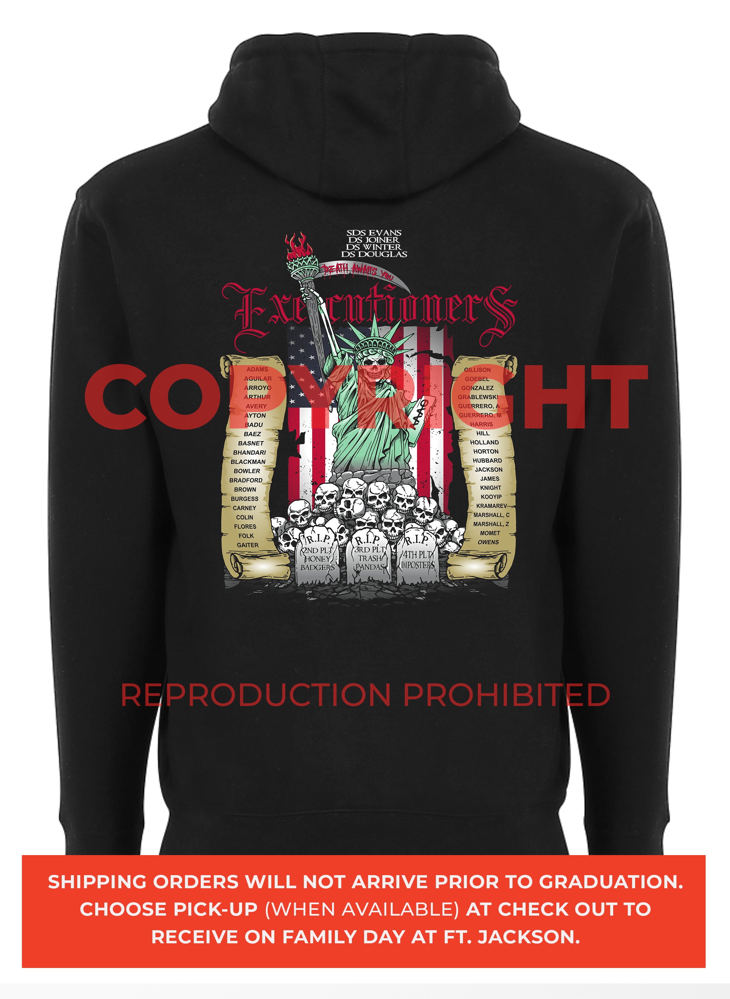 *DISCLAIMER: Please make sure you are picking the correct battalion/graduation date/company/platoon nickname. Platoon orders are NON-REFUNDABLE OR EXCHANGEABLE since they are custom made each week. Ordering incorrectly will result in additional fees (50% of your original payment and if required, shipping fees) if you wish to have your order corrected.
