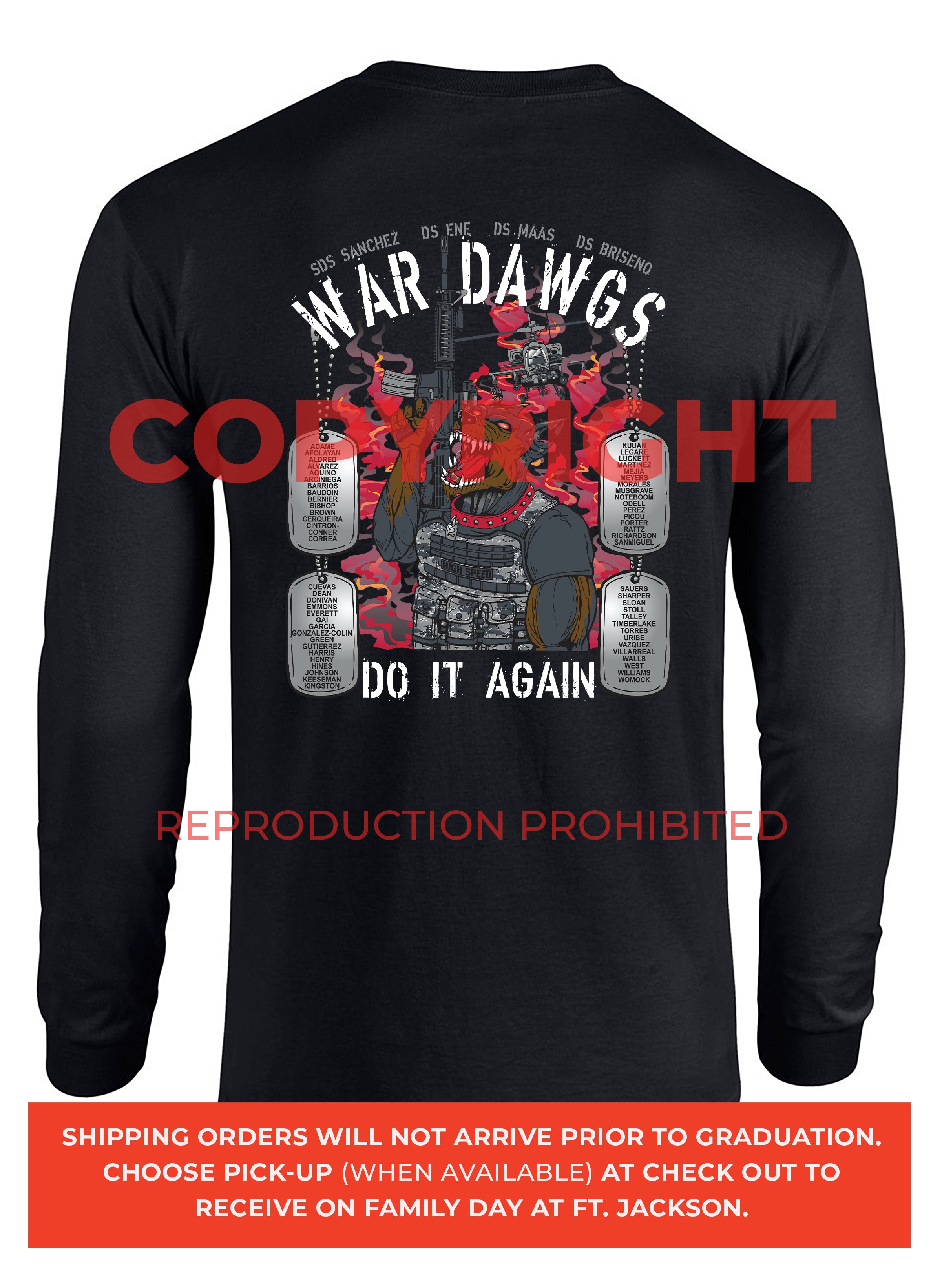 *Begin shipping the week of the graduation because shirts are custom made each week for the Soldiers, then we are able to ship the remainder to you at home!