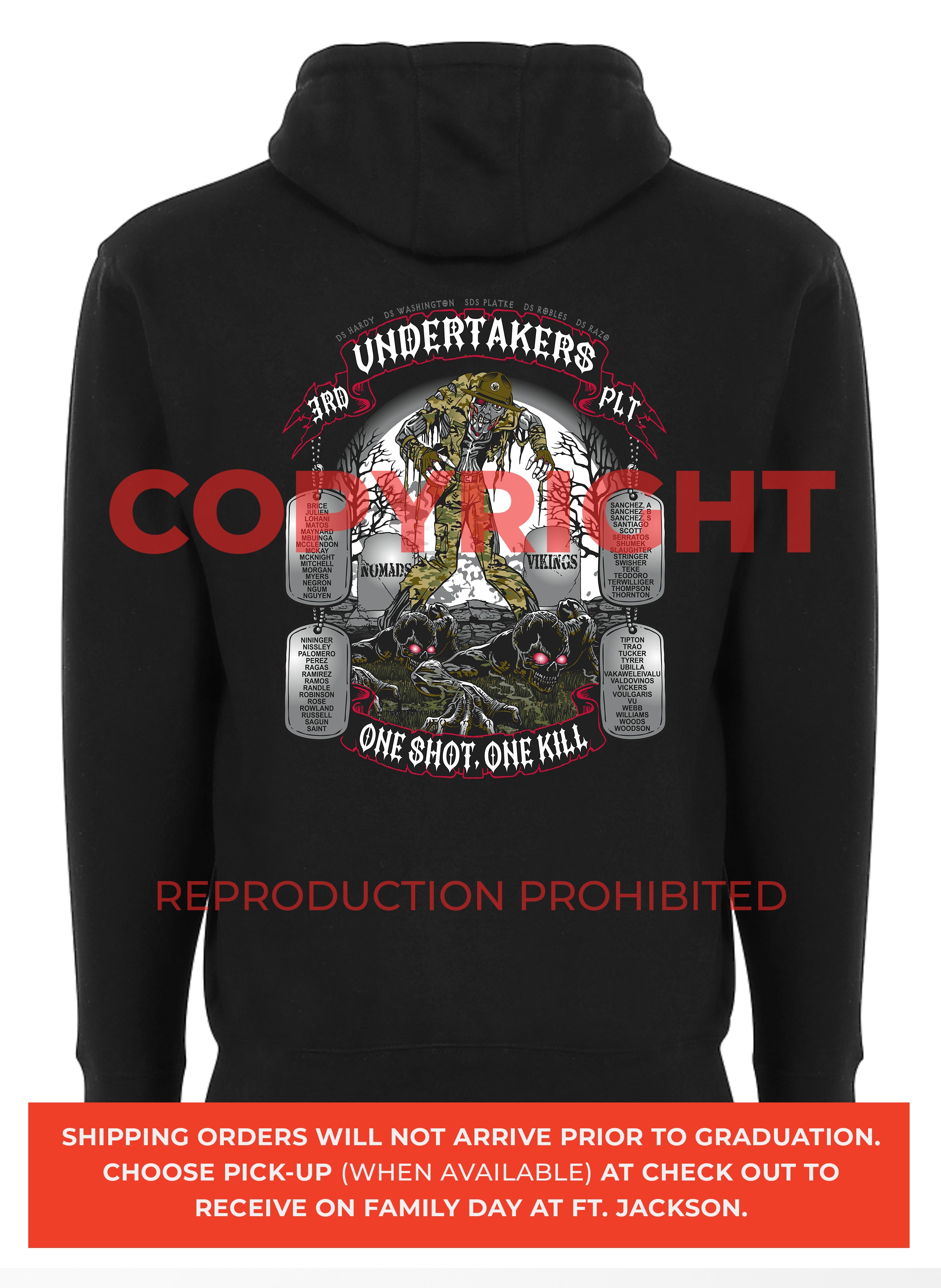 *DISCLAIMER: Please make sure you are picking the correct battalion/graduation date/company/platoon nickname. Platoon orders are NON-REFUNDABLE OR EXCHANGEABLE since they are custom made each week. Ordering incorrectly will result in additional fees (50% of your original payment and if required, shipping fees) if you wish to have your order corrected.