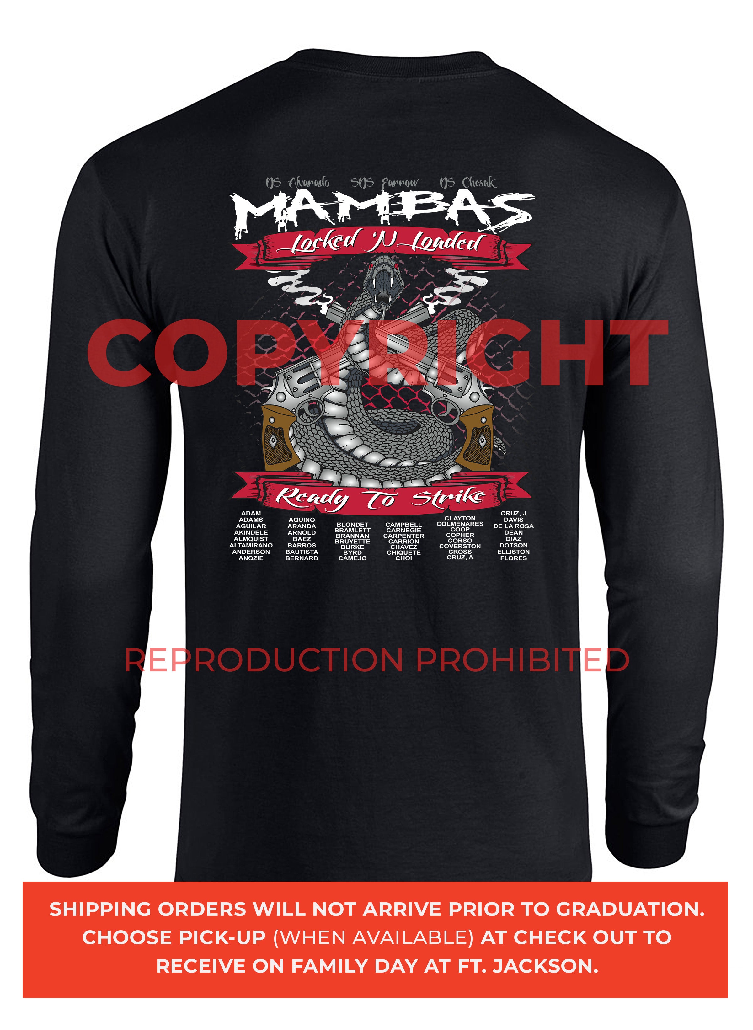*Begin shipping the week of the graduation because shirts are custom made each week for the Soldiers, then we are able to ship the remainder to you at home!