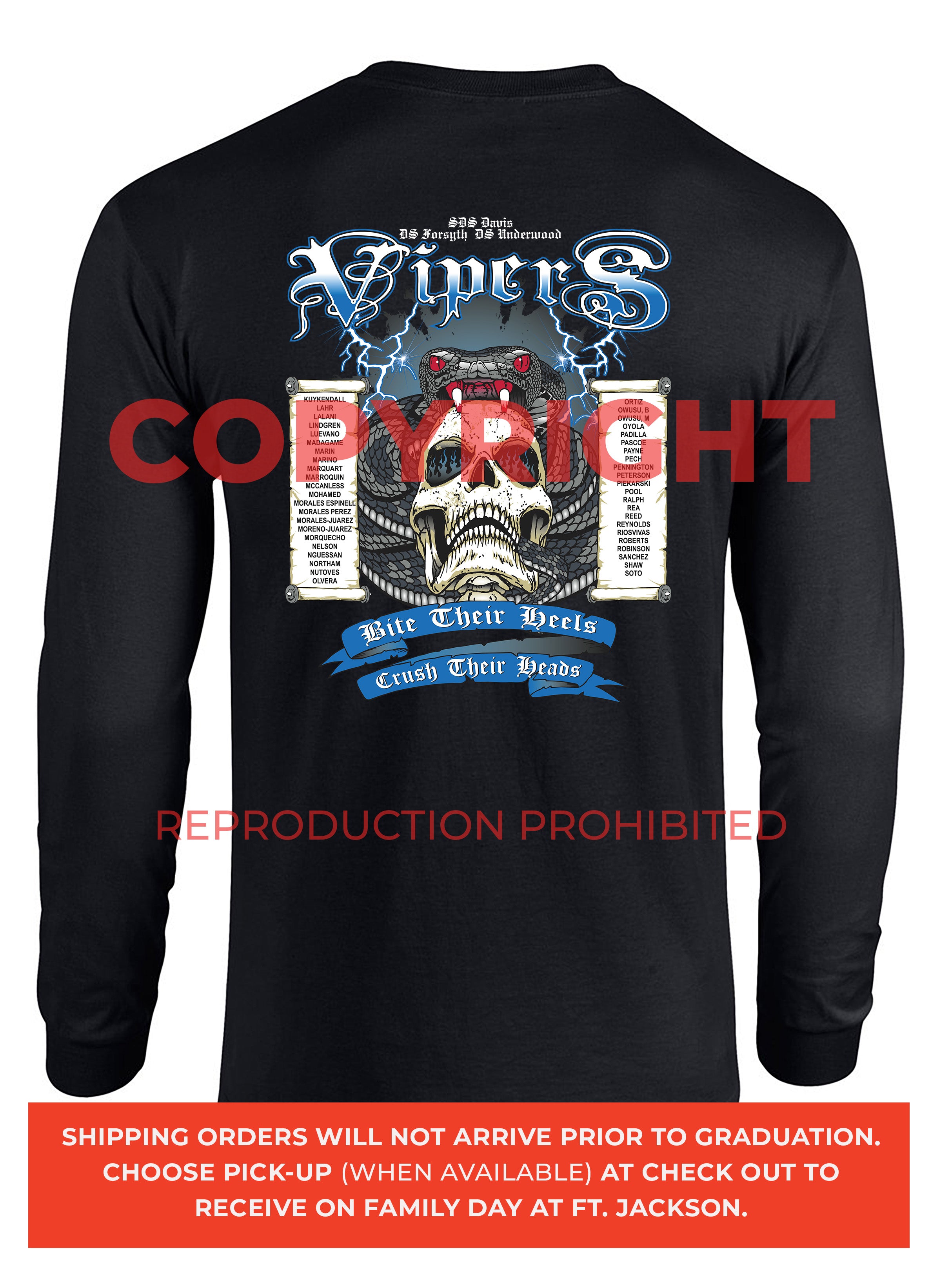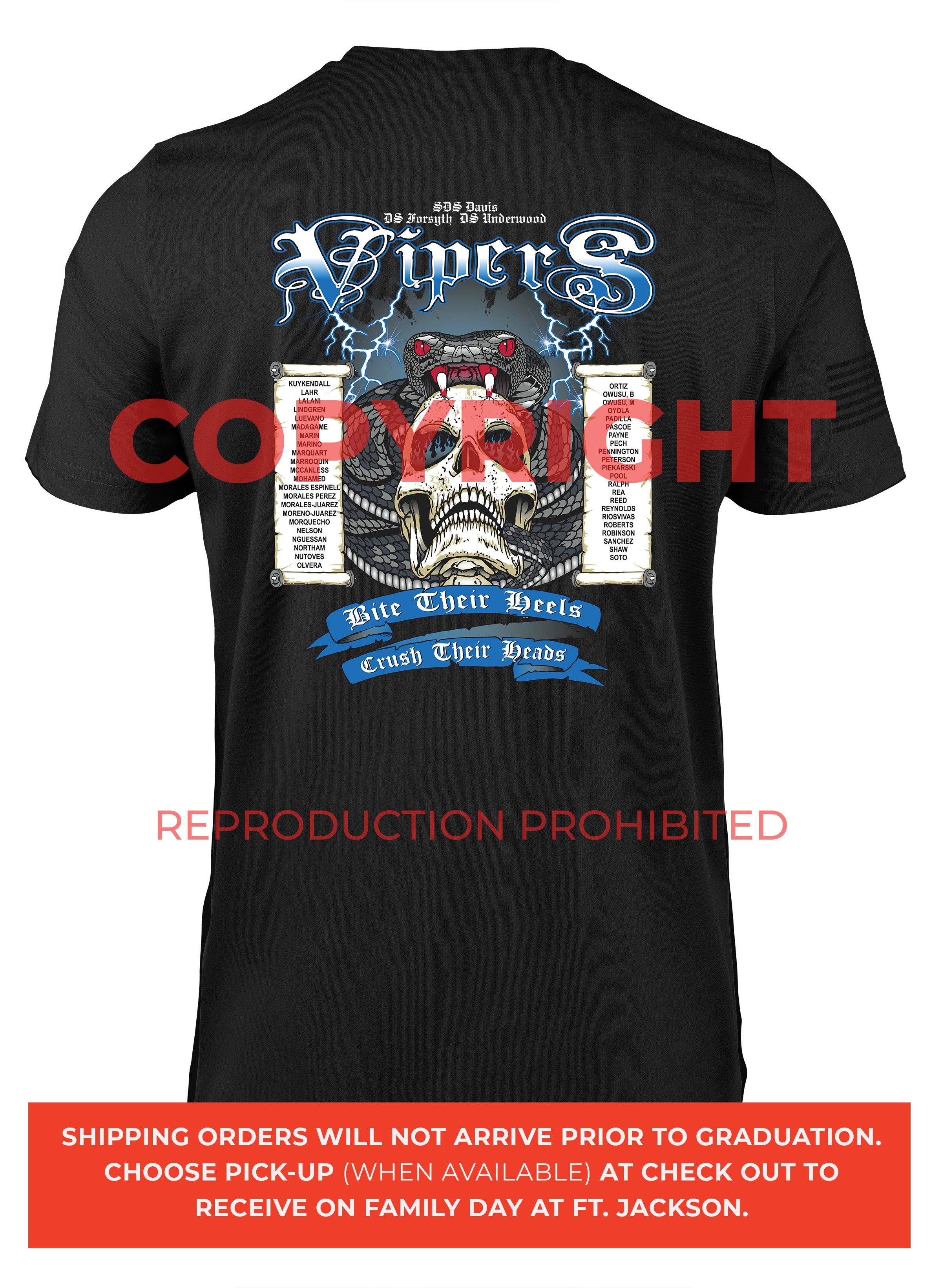 *Begin shipping the week of the graduation because shirts are custom made each week for the Soldiers, then we are able to ship the remainder to you at home!