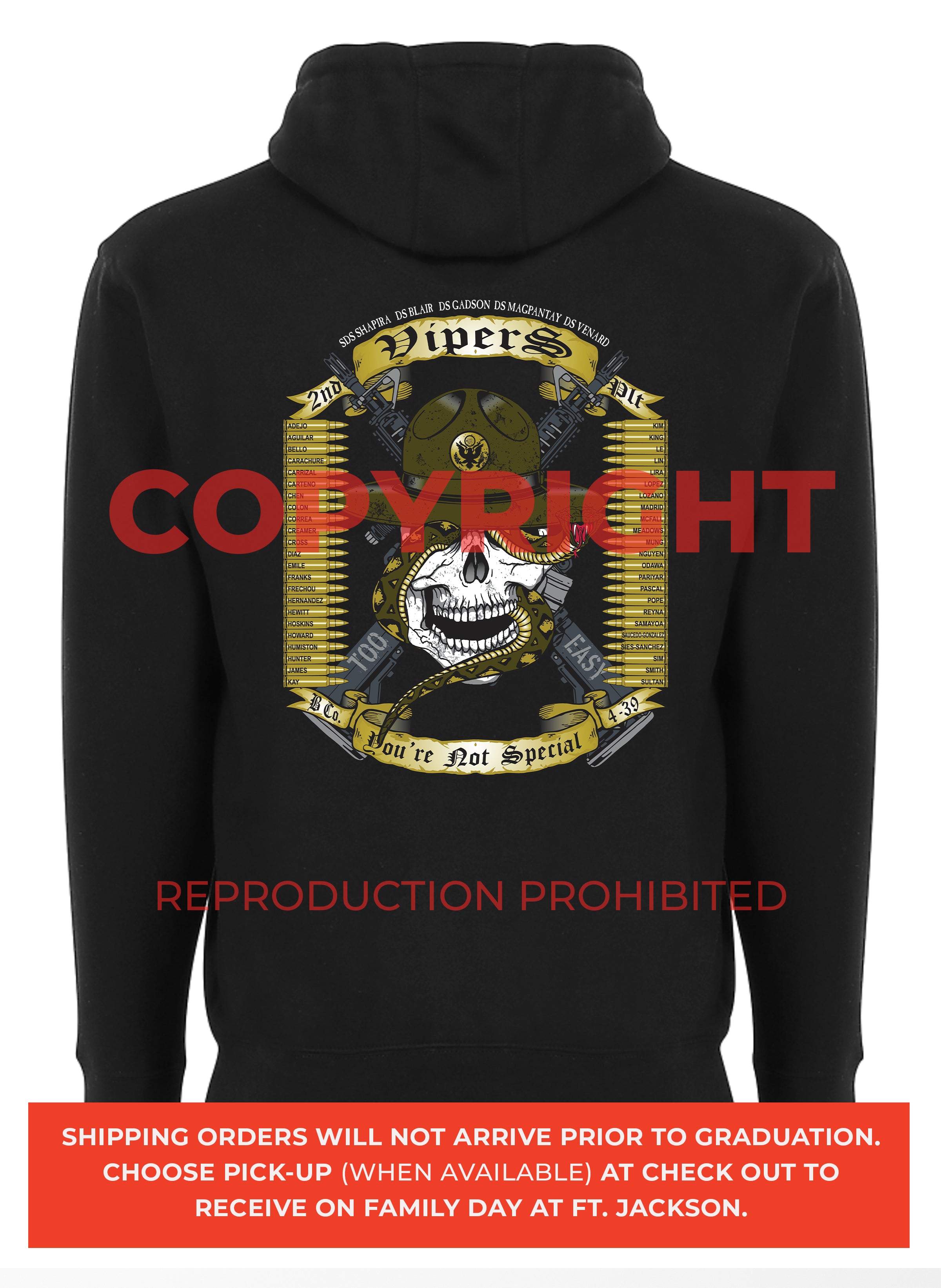*DISCLAIMER: Please make sure you are picking the correct battalion/graduation date/company/platoon nickname. Platoon orders are NON-REFUNDABLE OR EXCHANGEABLE since they are custom made each week. Ordering incorrectly will result in additional fees (50% of your original payment and if required, shipping fees) if you wish to have your order corrected.