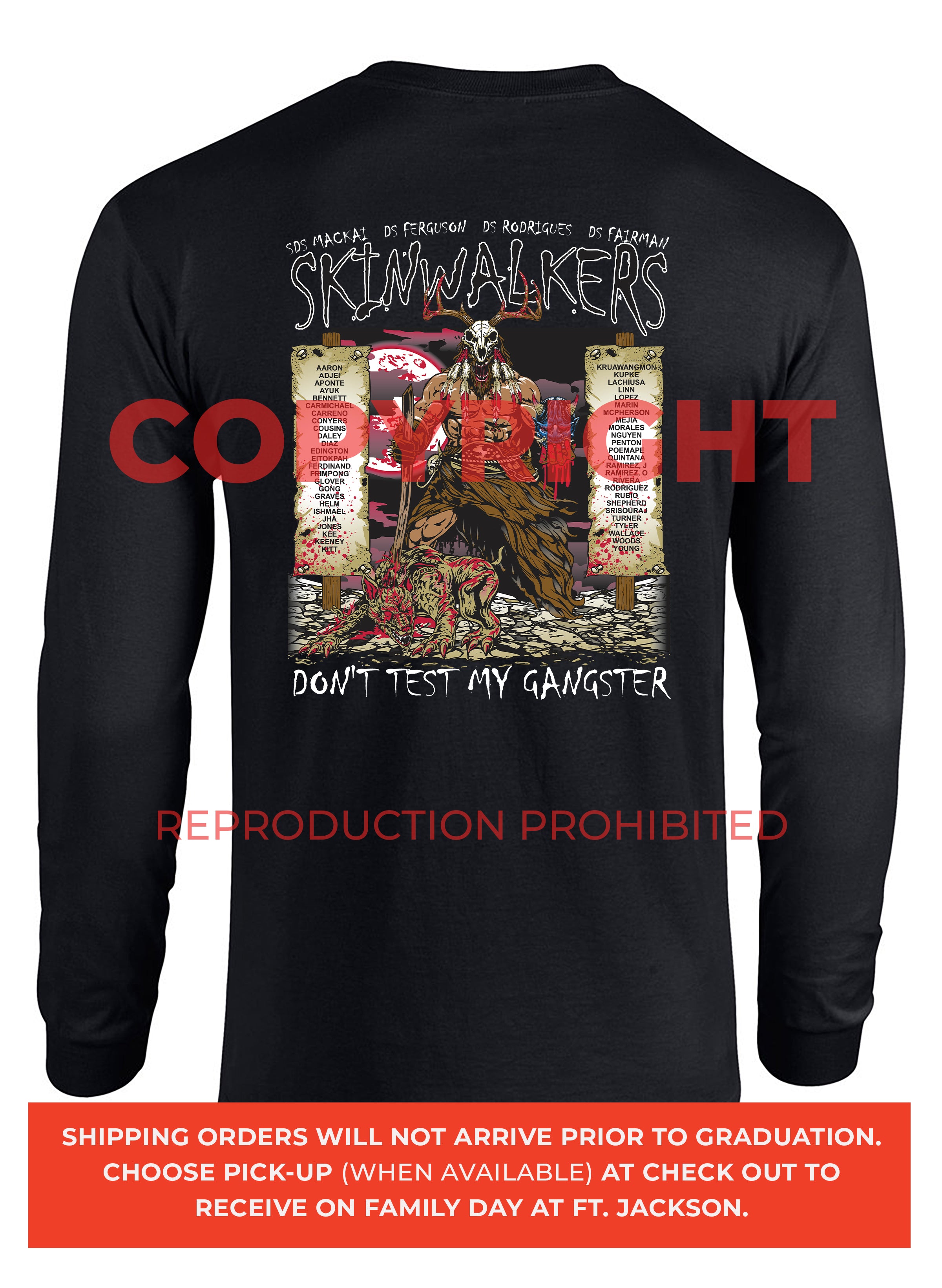 *Begin shipping the week of the graduation because shirts are custom made each week for the Soldiers, then we are able to ship the remainder to you at home!